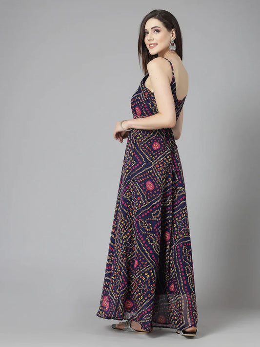 Georgette Bandhej printed Long Dress