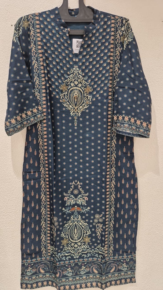 Navy Blue Crepe Silk Hand embroidered kurti Set