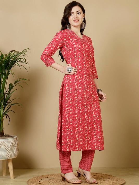 * CLEARANCE* Mauve Solid Kurti Pants with Printed Dupatta