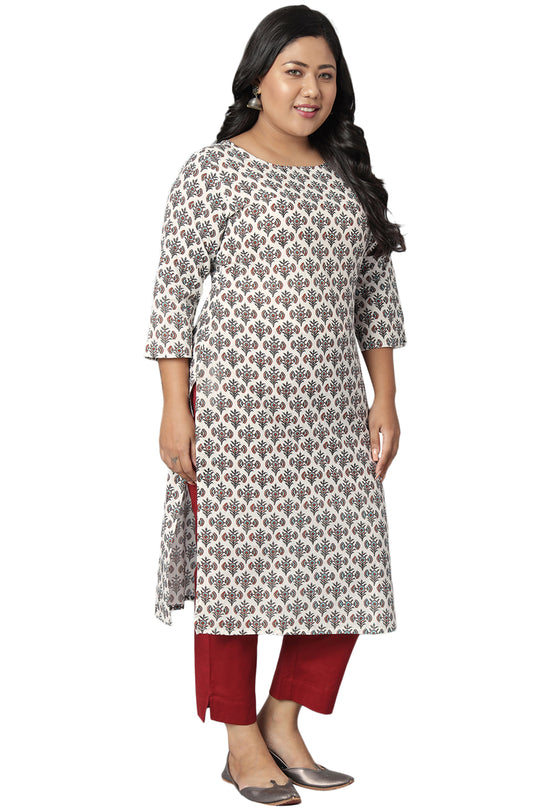 White Block Printed Cotton Kurti Top