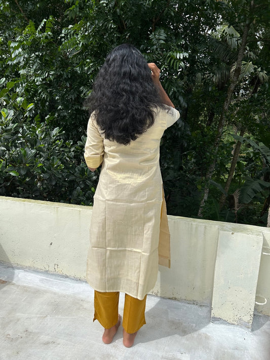 Kerala Tissue Cotton Kurti Top with Sugar beads embroidery & Zari Border(Top Only)