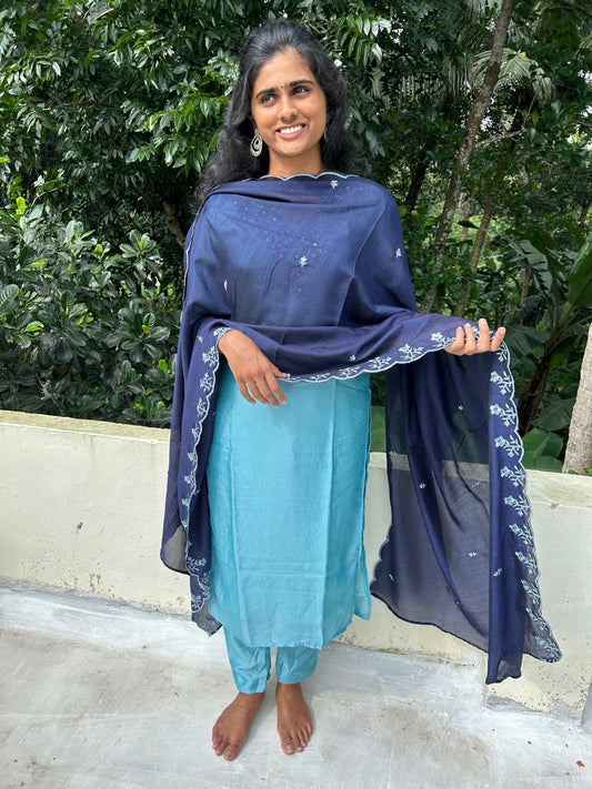 Light Blue Dola Silk Kurta Palazzo Set With Dupatta