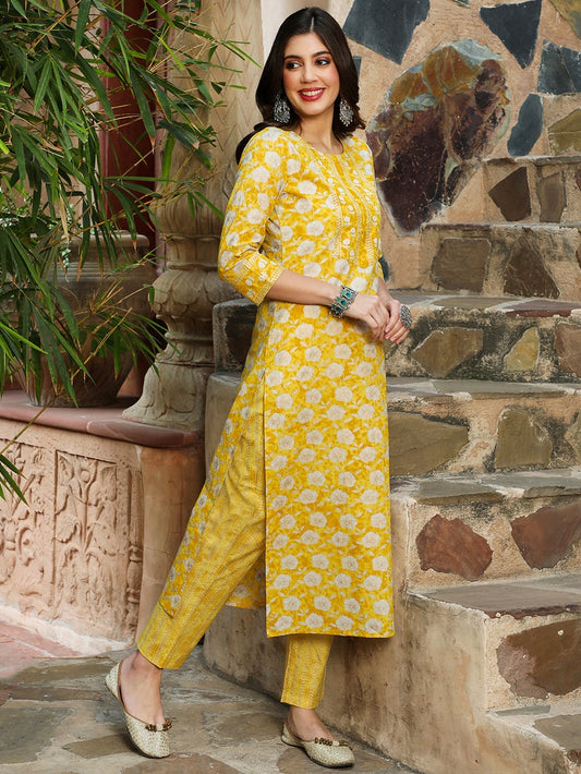 Golden Yellow Muslin Kurta Palazzo Set With Dupatta