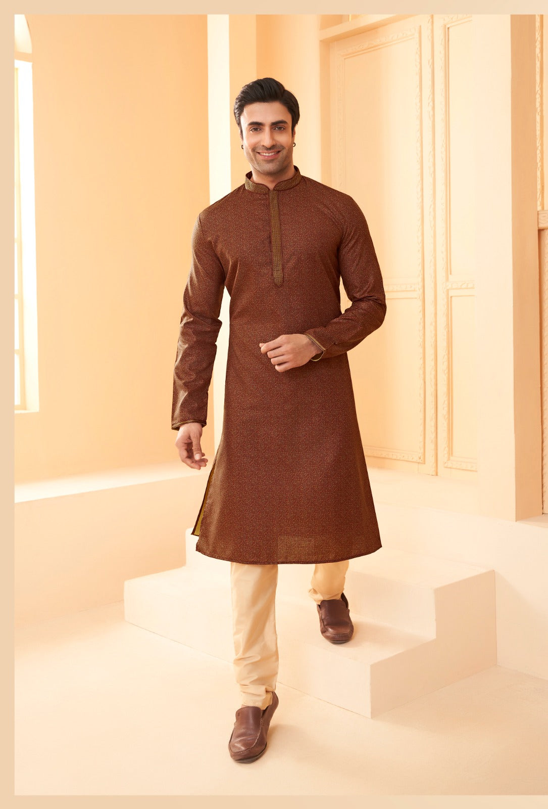 Experience comfort and style with our Maroon Cotton Kurta Set. Made from high-quality cotton, this set features a traditional mandarin collar that adds a touch of elegance. Perfect for any occasion,